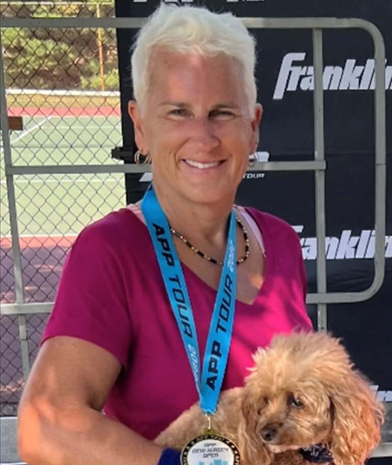 Early in the pandemic, Janet Galtes had broken her ankle in a downhill rollerblading accident that left her sidelined for most of a year. Thinking pickleball might be easier on her ankle, she jumped on the court in June 2021. Janet quickly learned that pickleball was quick, competitive, crazy social and ridiculously fun. Off she went with new friends on pickleball trips and to tournaments. During her travels she was frustrated with a lack of court time in tournaments, and also eager to play pickleball at home with family and friends. Janet soon conceptualized the Dink Buddy Net System and with the help of a fellow engineer brought it to fruition.